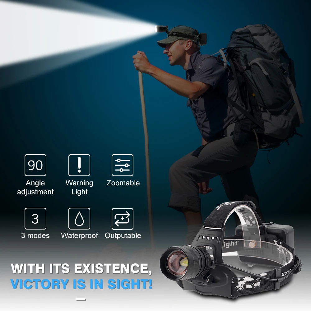 .image of BORUiT 2806 XPH50 LED Headlamp Zoomable 3-Mode Headlight USB Charger 18650 Battery Head Head Torch